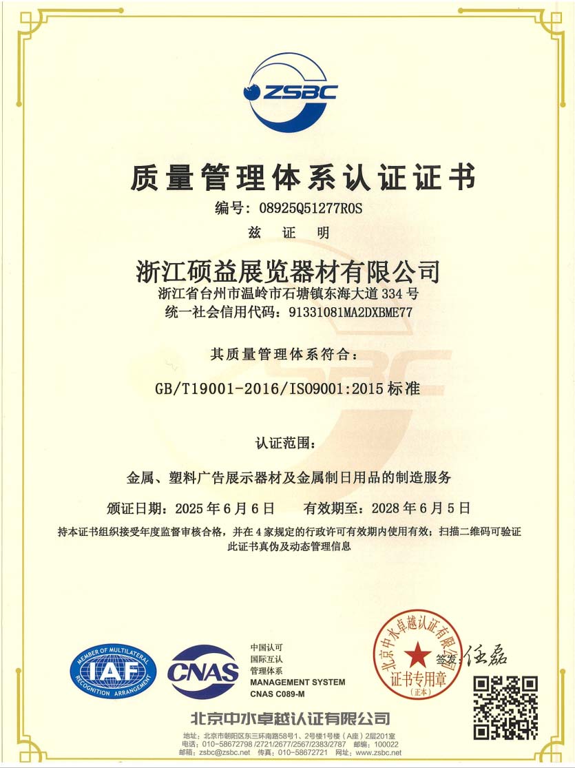 浙江碩益展覽器材有限公司是拉網(wǎng)、易拉寶、轉(zhuǎn)盤(pán)、旗桿等產(chǎn)品專(zhuān)業(yè)生產(chǎn)加工的公司,擁有完整、科學(xué)的質(zhì)量管理體系。浙江碩益展覽器材有限公司的誠(chéng)信、實(shí)力和產(chǎn)品質(zhì)量獲得業(yè)界的認(rèn)可。歡迎各界朋友位臨參觀(guān)、指導(dǎo)和業(yè)務(wù)洽談。