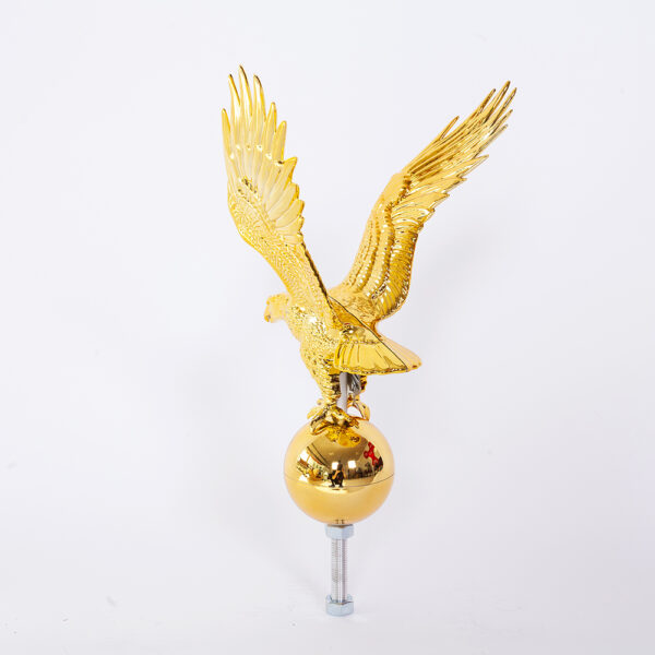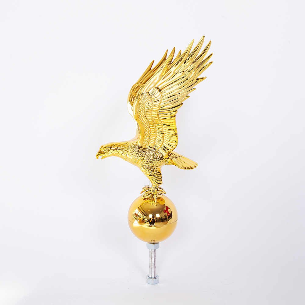 展翅老鷹:左半邊老鷹1片,右半邊老鷹1片,金球個(gè)直徑77mm均為ABS,鋁合金桿1個(gè),長度205mm,直徑12mm,螺帽1個(gè),說明書,1套1個(gè)普外內(nèi)盒,40套1個(gè)普五層外箱