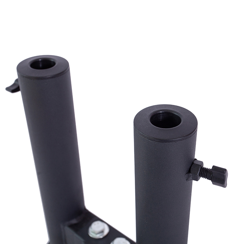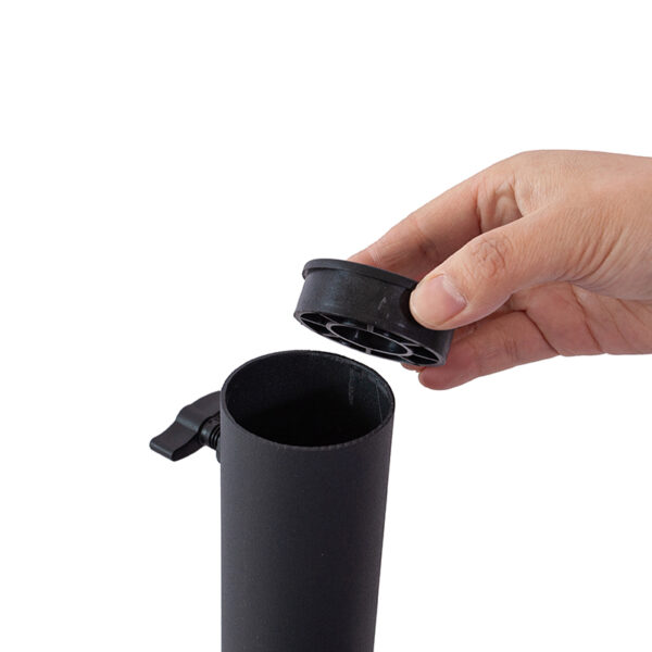 單管黑色磨砂鐵底座,圓管:55*370*1.5MM 方管:40*40*370MM 可以插2個規(guī)格旗桿(50MM&25MM),固定式底座。