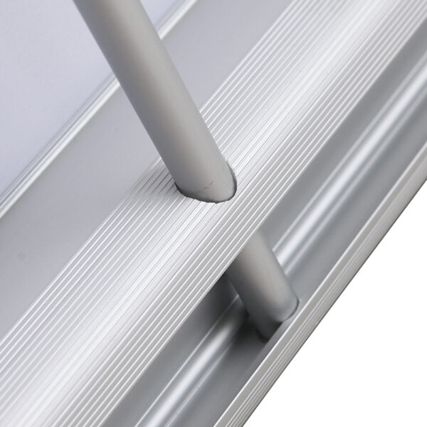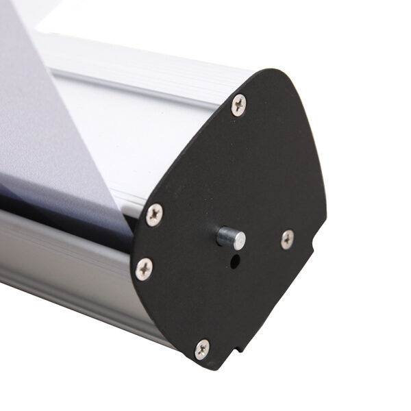 配有鋁合金銀側(cè)蓋,加厚處理,更好的保護易拉寶,使用易拉寶更加堅固耐用,大大延長使用壽命,畫面連接加強3M膠,使產(chǎn)品牢固不脫落。